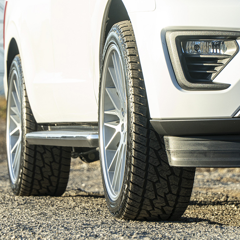 Пятиступенчатая конструкция блоков протектора обеспечивает лучший отвод воды и помогает снизить уровень колесного шума на городских дорогах и в условиях проселочной местности.
